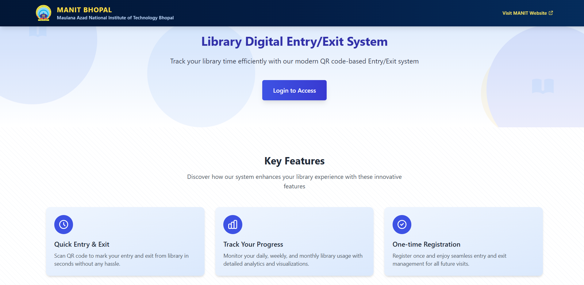 Benefits of digital entry/ exit system: – Will save a lot of time of the users as you only need to scan the QR code for entry/ exit, rest of the process will be completed automatically. – Will save a lot of paper (print register), currently on an average 15 print registers are being used (contains 400 pages each). – Can track the library user footprints. |