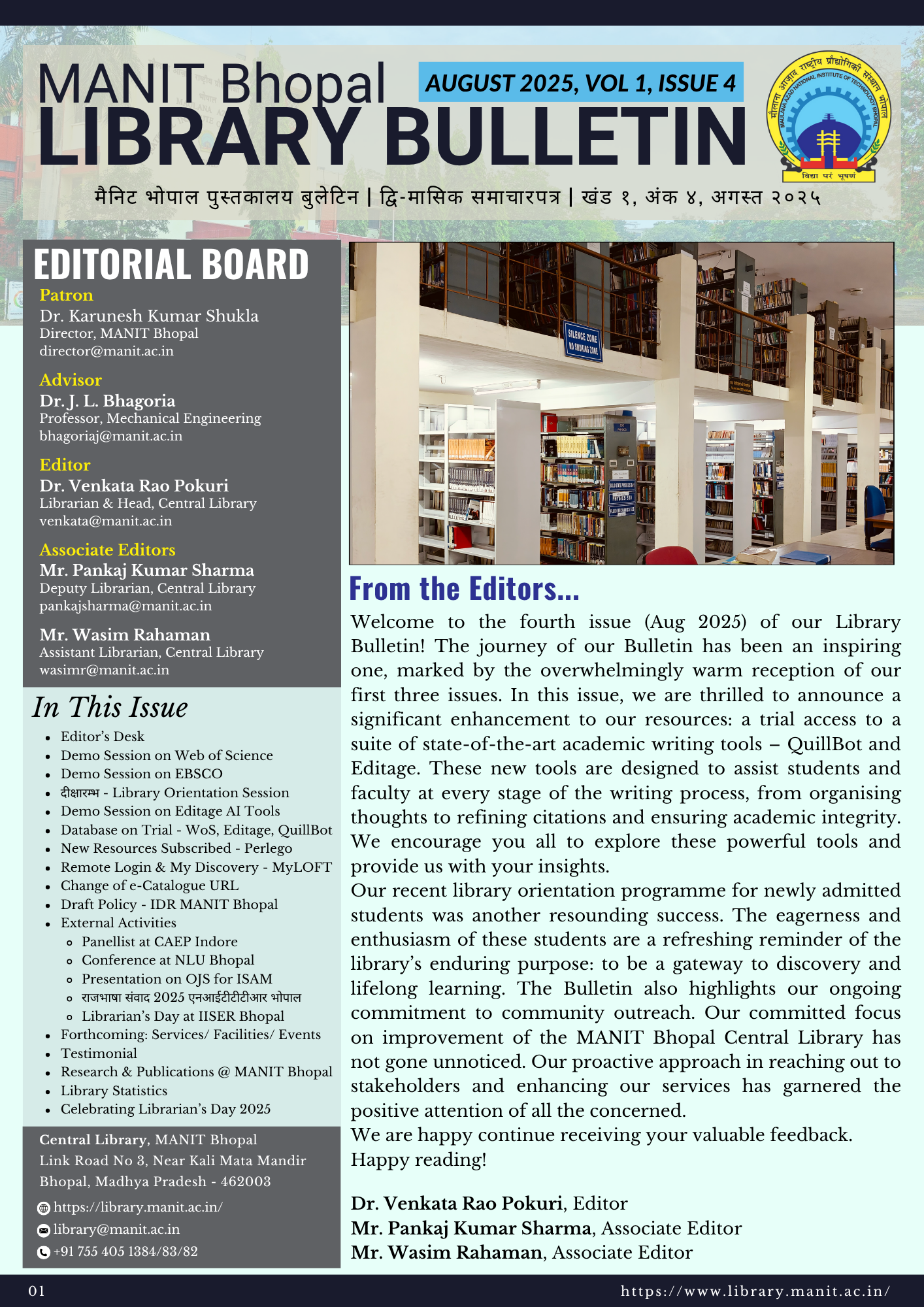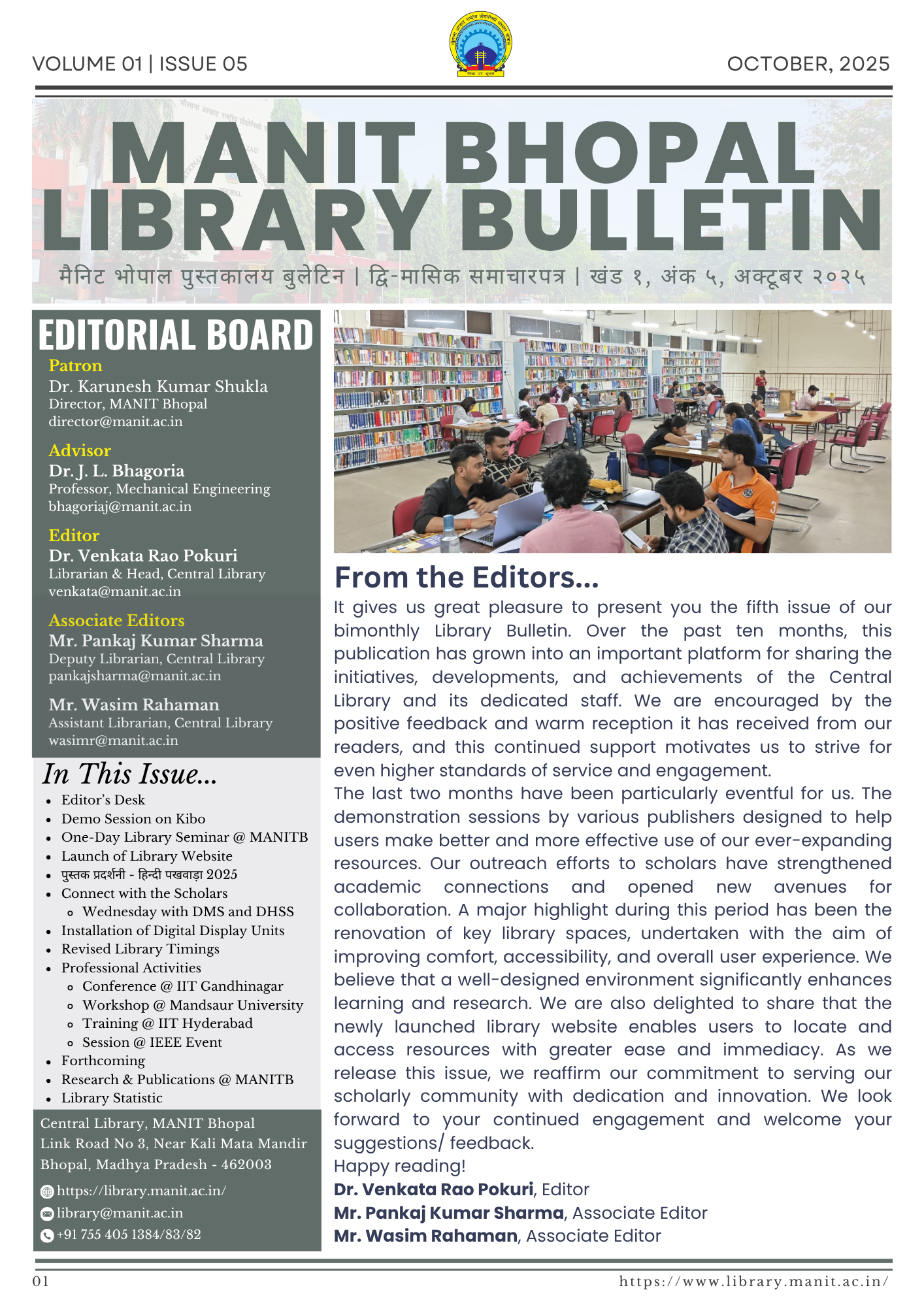 For more details you may send us an email to library-rs@staff.manit.ac.in.